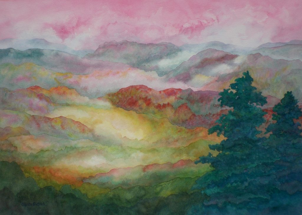 Mountain Glow / 4.5″ x 6.5″ Yupo / $100